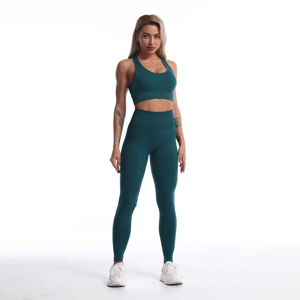 2 Piece Outfits Women Seamless Yoga Workout Set Gym Leggings And Sports Bra Outfits Activewear