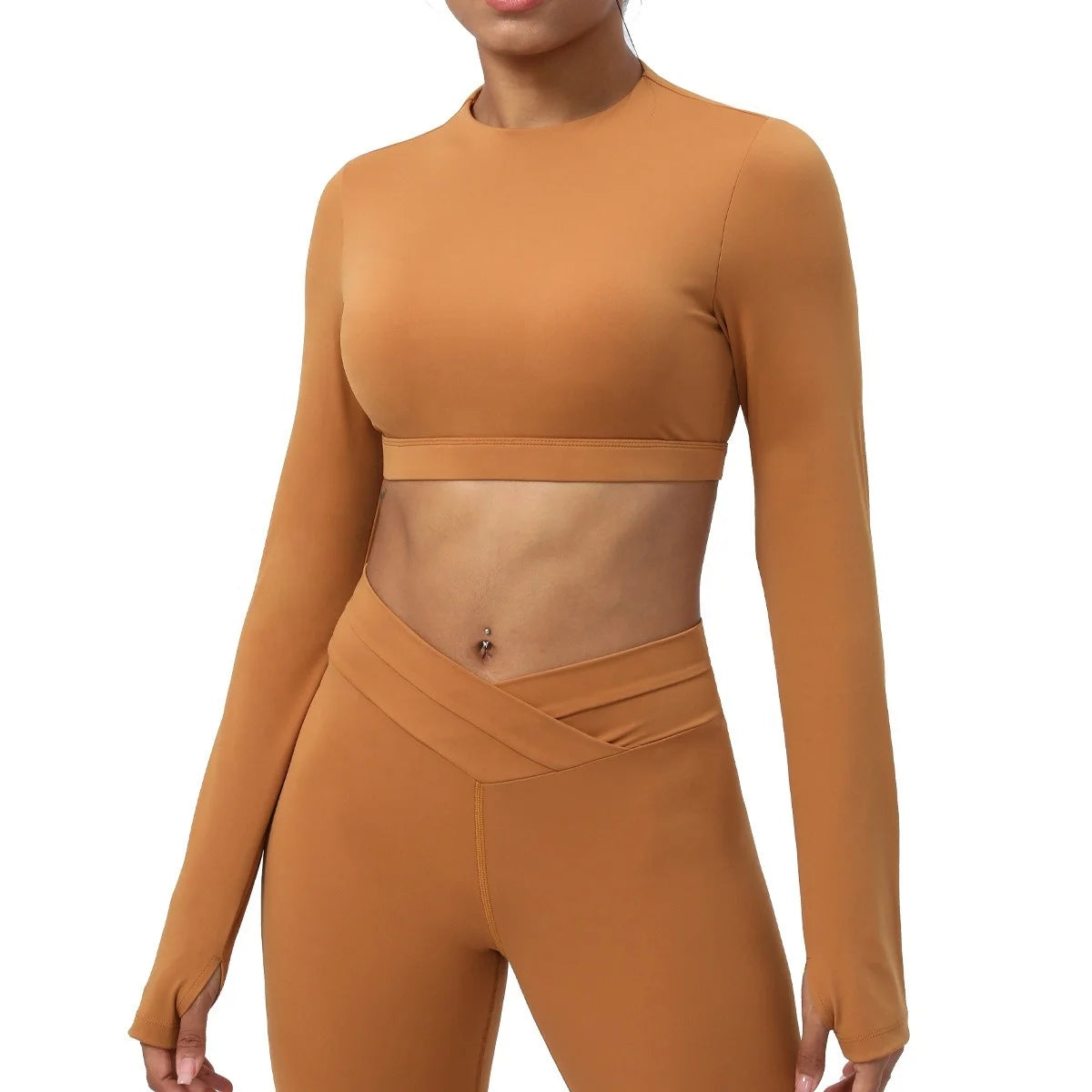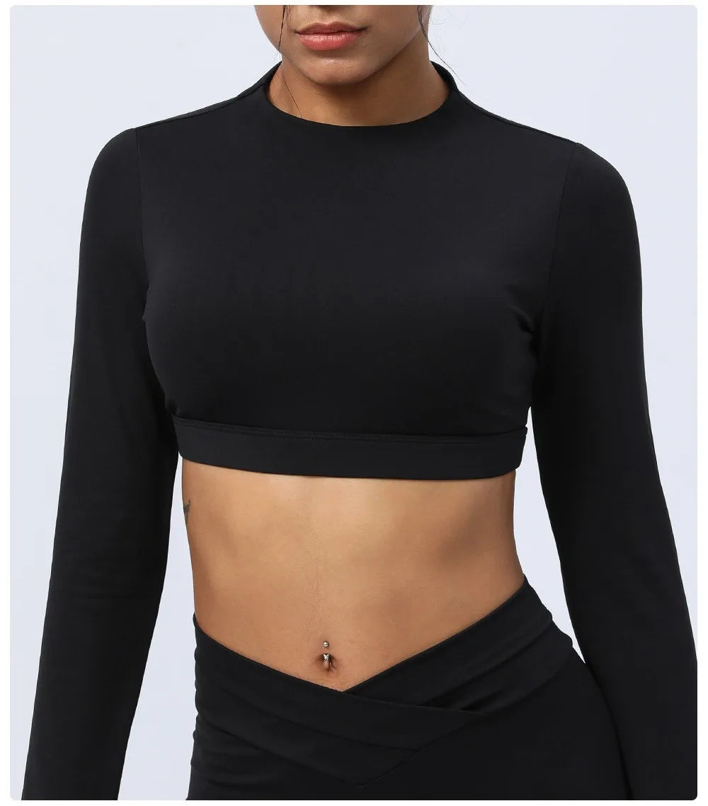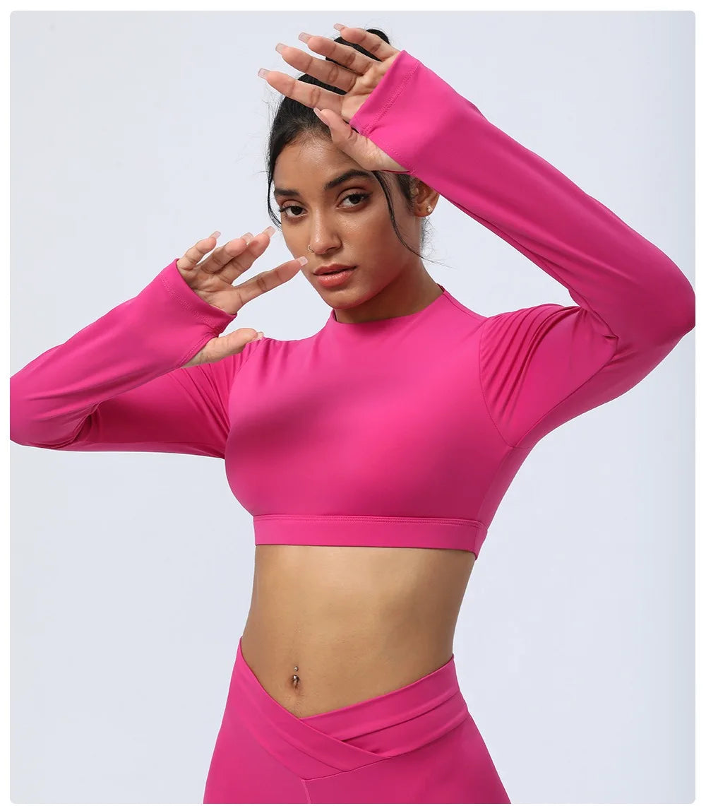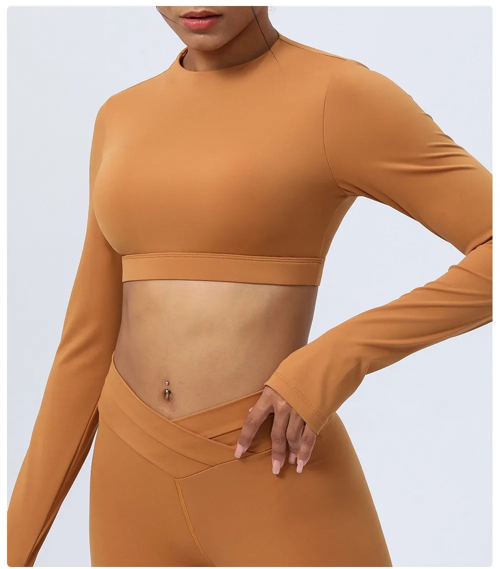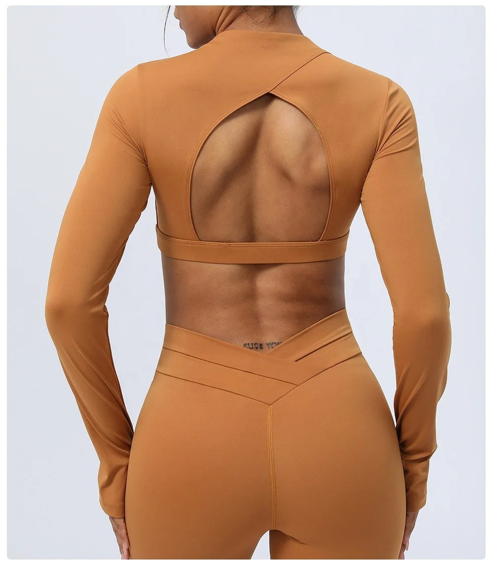 2 Piece Yoga Fitness Clothes Exercise Sportswear Leggings Long Sleeve Padded Crop Top Active Gym Wear Workout Sets for Women