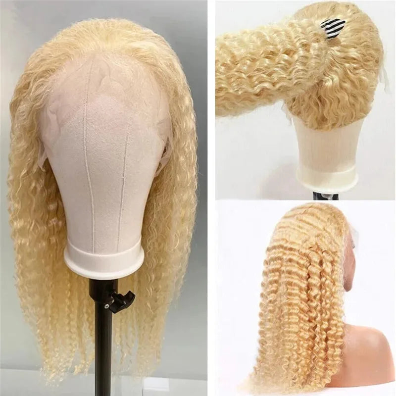 30 Inch Raw Virgin Human Hair Deep Wave 613 Blonde Lace Front Closure Wig 13x4 Curly Transparent Lace Frontal Wig