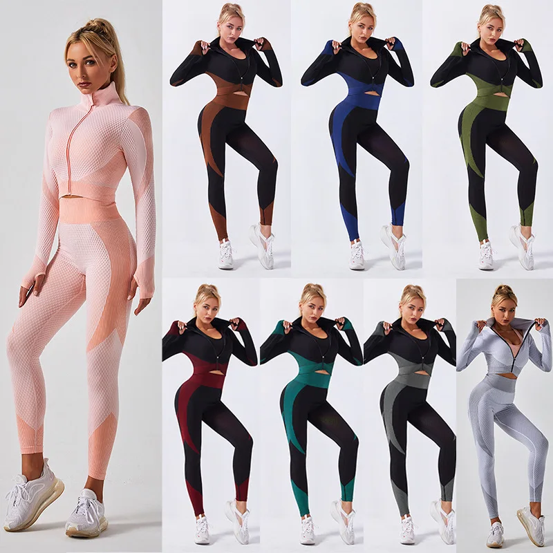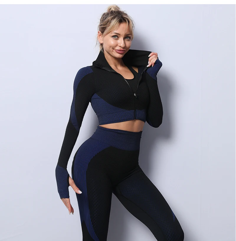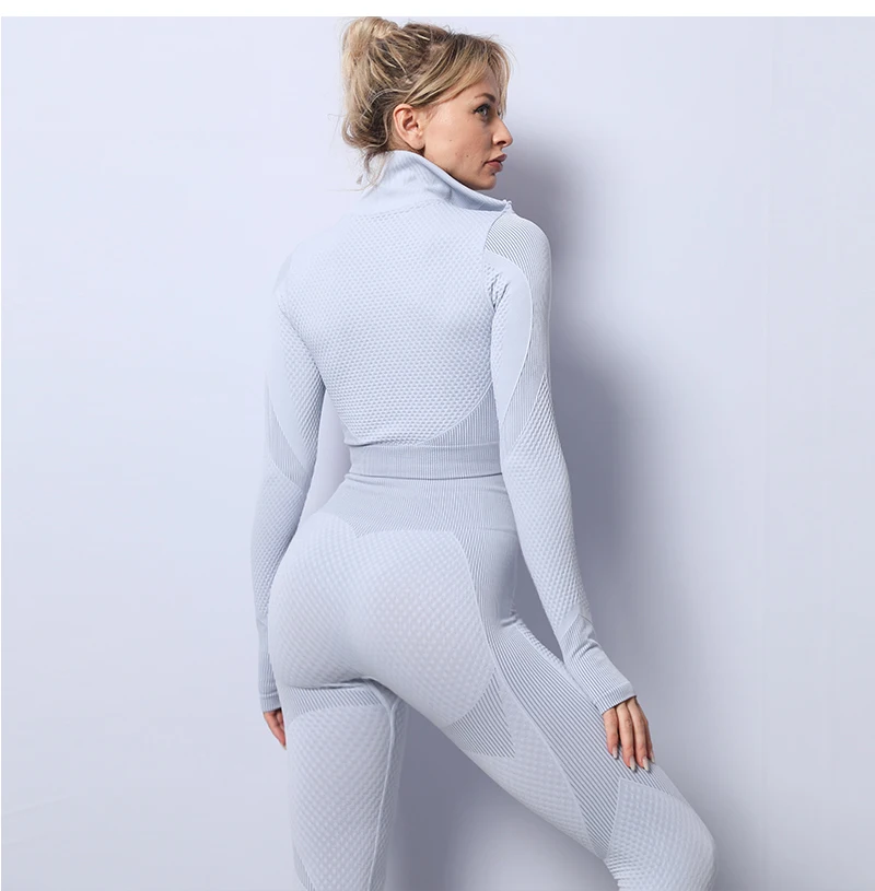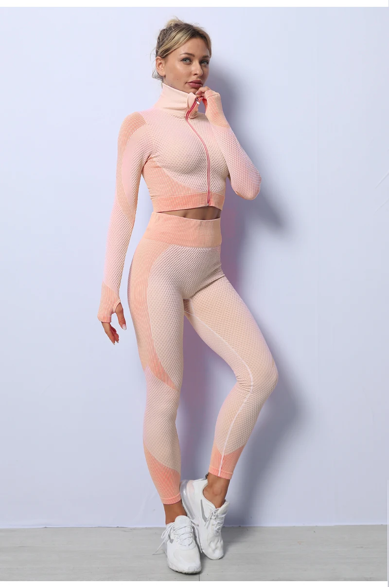 Yoga Gym Wear Set Fitness Long Sleeve Crop Top High Waist Yoga Suit Legging Sets