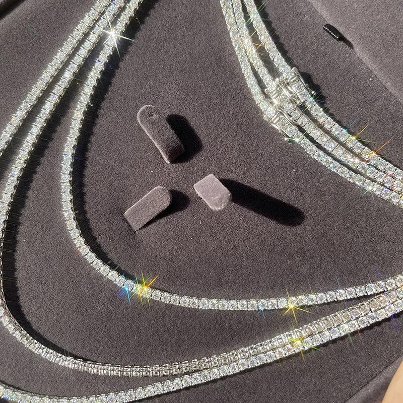 As left photo, when you turn on diamond tester pencil, if Moissanite button lights up, it means moissanite, otherwise, it means not real moissanite.